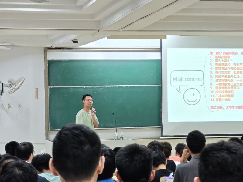 针对刚步入大学的2024级新生存在的种种困惑,刘振老师给予了充分而又细致的解答,让同学们对大学生活有了更清晰的认识和规划。内容涉及到新生适应教育、消防安全及防诈骗教育、网络文明教育、资助政策宣讲、诚信考试教育、廉洁教育、大学人际关系处理技巧等等。刘老师还鼓励同学们积极参与各类课外科创竞赛活动,锻炼动手能力和团队协作精神,为未来的职业发展打下坚实的基础。
