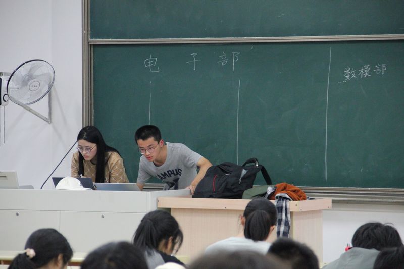笔试环节于10月12日晚上在教3-304、305、312、313举行。笔试题主要考察模拟电路、数字电路、电路分析与设计、电子元器件等多个领域的基础知识及应用,旨在考察同学们的学科素养和创新能力。考试过程中,同学们认真作答,展现出扎实的专业基础和良好的思维能力。经过严格的阅卷和评分,有311名同学脱颖而出,获得了面试资格。