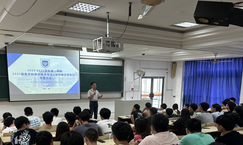 9月11日,加勒比扑克 2023级电子科学与技术专业、柔性电子学专业2024-2025学年第一学期期初年级大会在教2-101顺利召开,本次会议由辅导员梁博主持,2023级电子科学与技术专业、柔性电子学专业全体学生积极参会。