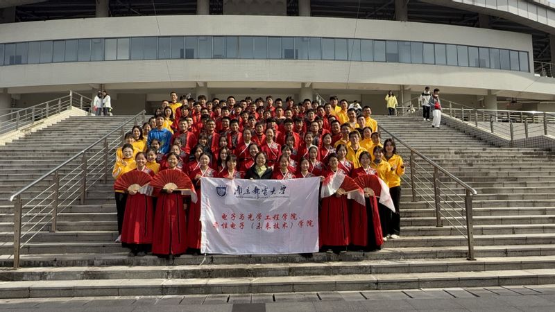 方阵展示环节,他们步伐矫健,队列整齐,宛如一排排精密的电子元件,精准无误地编织着青春的奋斗乐章。在这片绿茵场上,每一名电光柔学子都是一名勇敢的探索者,他们不仅在知识的海洋里遨游,在实验室里探索未知,此刻,他们更要在运动场上挥洒汗水,挑战自我,展现奋斗者不屈不挠、勇于攀登的精神风貌。方阵训练过程中,南京师范大学汪祉祺老师指导同学们进行了6次集体训练,校体育部杜振中老师也为同学们进行了3次训练指导,与全体方阵同学一起带来了今天的精采呈现。