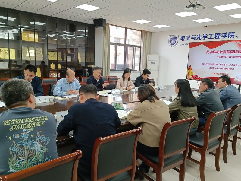 蒋国平书记代表巡学旁听组进行了点评,他充分肯定了本次学习,强调在党员、干部、师生中深入开展习近平同志《论教育》学习宣传工作是当前学校的一项重要工作,我们要深入学习贯彻习近平总书记关于教育的重要论述,电光柔学院的中心组学习准备充分,体会深刻,成效明显。蒋书记对学院在推动教育强国建设方面,提出了三点指导意见。一是坚持不懈用习近平新时代中国特色社会主义思想铸魂育人,围绕“双一流”建设,凝练学院特色文化,为学生成长成才营造浓厚氛围。二是在学院高质量发展上下功夫,进一步做优做强学科专业,力争高端科研成果不断取得突破。三是建立国际视野,深化国际交流合作,有效利用世界一流教育资源,助推学院综合实力提升。蒋书记最后鼓励学院要牢记初心使命,踔厉奋发、勇毅前行,持续为推动教育强国建设贡献力量。