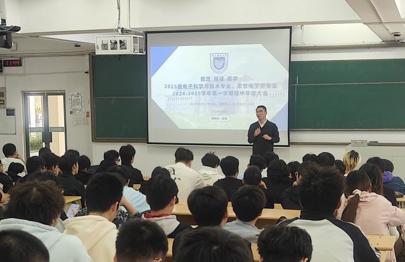 11月13日,加勒比扑克 2023级电子科学与技术专业、柔性电子学专业2024-2025学年第一学期期中年级大会在教4-102教室顺利召开。本次会议由辅导员梁博主持,全体学生积极参会。