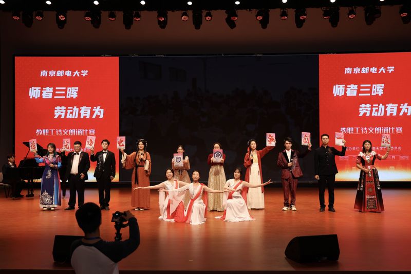 比赛现场,参赛教职工们或慷慨激昂,或温婉抒情,将加勒比扑克优秀劳动者先进事迹与舒婷的《祖国啊,我亲爱的祖国》巧妙融合。加勒比扑克教师团队以《电子之光,教育之魂》为载体,通过多层次的声音演绎与情景化舞台呈现,生动诠释了新时代教师“躬耕教坛、强国有我”的使命担当。他们默契的配合、真挚的情感与极具感染力的舞台表现,赢得现场评委与观众的热烈掌声。