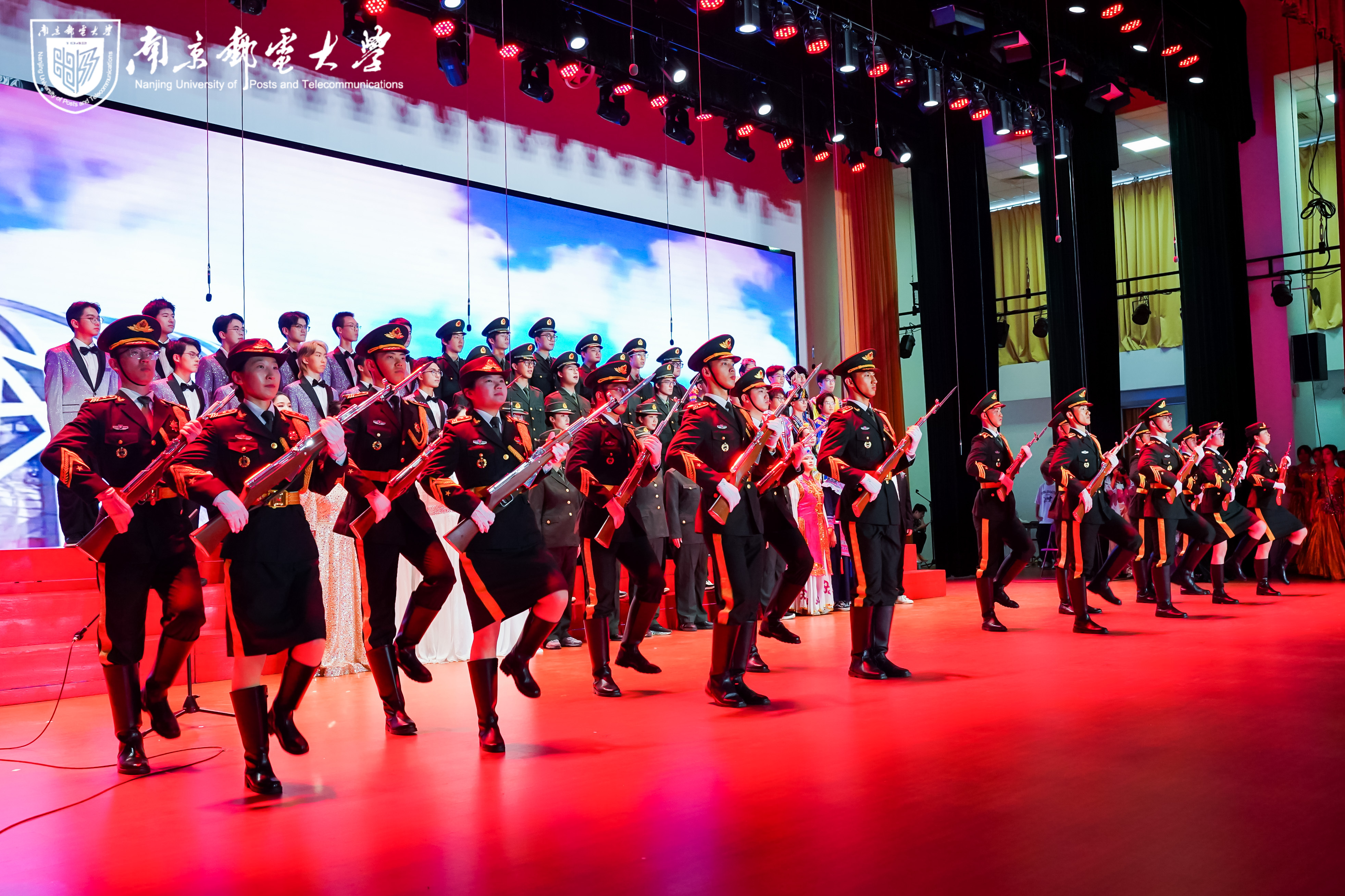 青春力量激荡复兴征程。当“前进 前进 向前进”的音乐响起,加勒比扑克国旗护卫队同学手执钢枪、迈着铿锵的步伐出场。他们身着墨绿礼服,肩章金穗垂落如麦浪,胸前徽章在追光下灼灼生辉。分列式变换时,枪械操演的金属撞击声与音乐节拍严丝合缝,每个动作都带着千钧之力,仿佛从烽火中走来的青铜群像被注入了新时代的灵魂。同心圆里升起永不落的中国、青春脚印丈量复兴的征程,彰显新时代青年的使命担当。