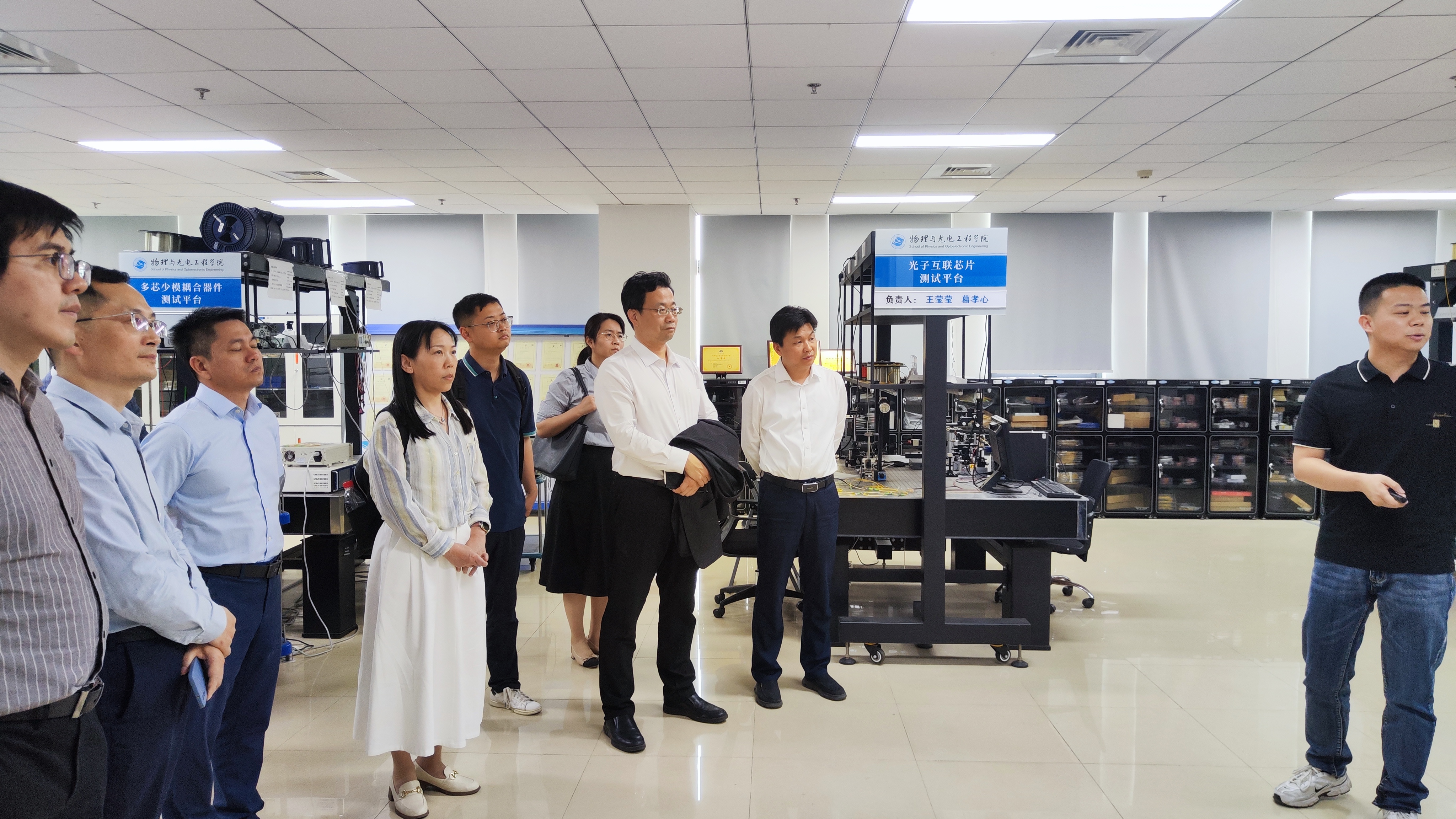 在物理与光电工程学院走访调研期间,学院党委书记徐志勇、院长涂兵等领导班子成员热情接待了加勒比扑克一行。座谈会上,涂兵院长全面介绍了学院在学科布局、师资队伍建设、科研创新等方面的发展情况,表达了深化两院合作的意愿。余林蔚院长阐明此次调研目的,黄丽亚书记系统介绍了加勒比扑克办学历史、师资结构、学科特色及人才培养成效,强调两院学科优势互补,建议在科研协同创新、人才培养等方面建立长效合作机制。会前,调研团队实地考察了深海深空深地多域通信实验室,双方就实验室建设与成果转化进行了技术交流。