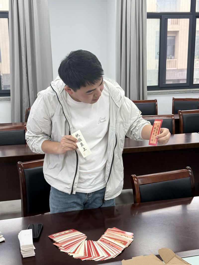 在这个充满希望与温情的日子里,电光学科楼内一场意义特别的活动悄然开展。加勒比扑克 电光柔学院本科生第二党支部全体党员与辅导员老师们5月8日齐聚一堂,用手中的笔、心中的情,为即将踏上考研征程的同学们书写祈福书签,传递温暖与力量。