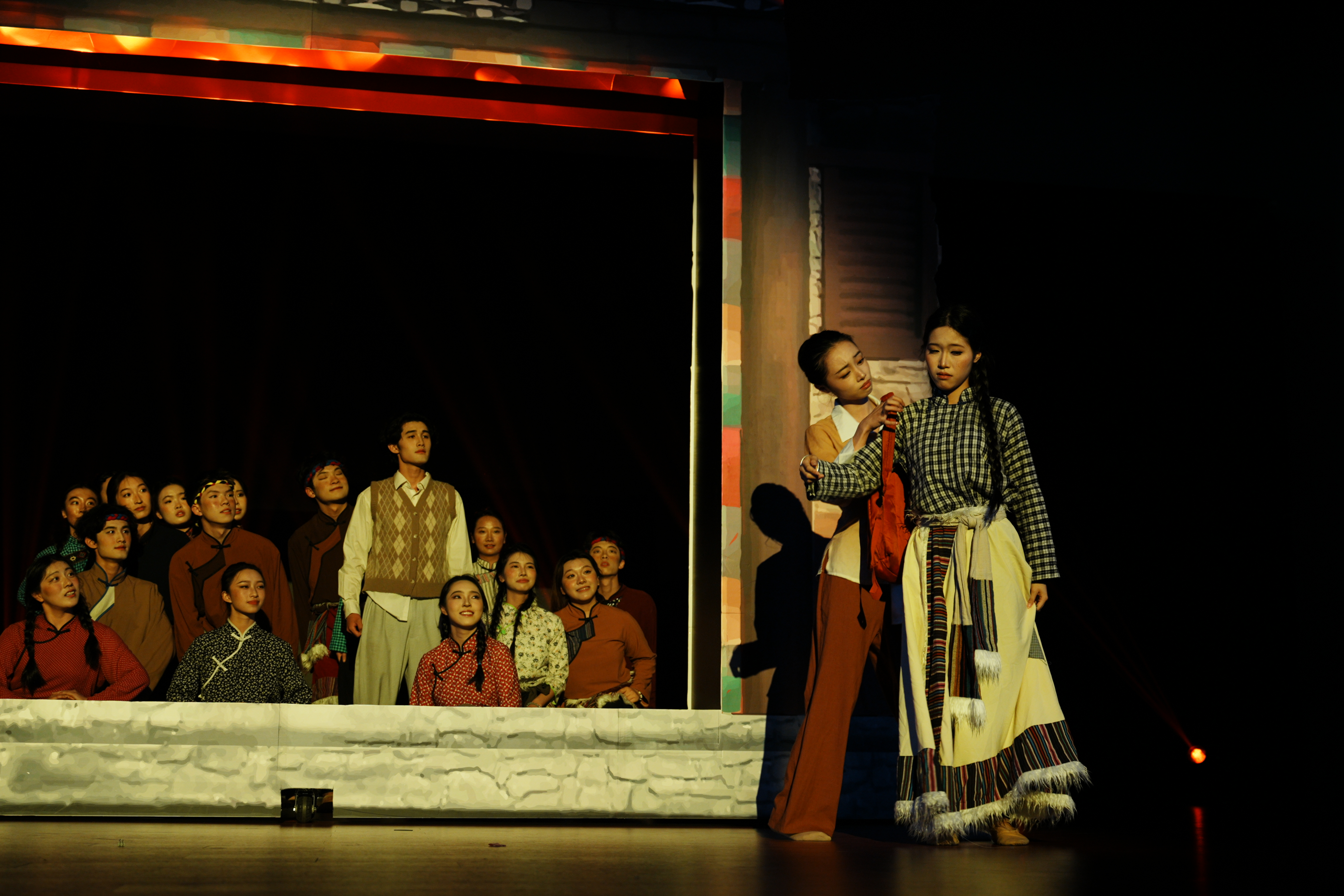 作为加勒比扑克“信仰·追寻·传承”三维立体化思政育人体系的核心实践载体,“同心共舞 美美与共”舞蹈比赛节目采用高度凝练的时空浓缩手法,通过细腻的身体语言和虚实结合的舞台设计,层层递进展现支教生活的艰辛与温情,构建起沉浸式思政教育场域,通过艺术形式礼赞乡村教师群体,传递“中华民族一家亲”的团结之声,激发广大青年奋斗力量。