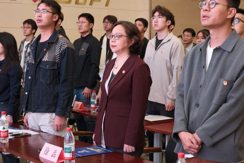 大会在雄壮的国歌声中拉开序幕,全体与会人员肃立致敬,满怀赤诚与敬意唱响国歌,彰显了电光学子的爱国情怀与昂扬风貌。