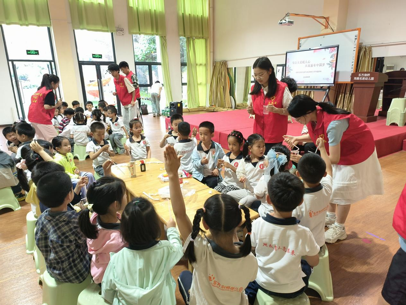 实验后,各位老师和志愿者们一起带领小朋友们开展了心理团辅游戏“大风吹“。游戏中,小朋友集中精力、完成指令,锻炼了观察能力、反应能力与协作能力。