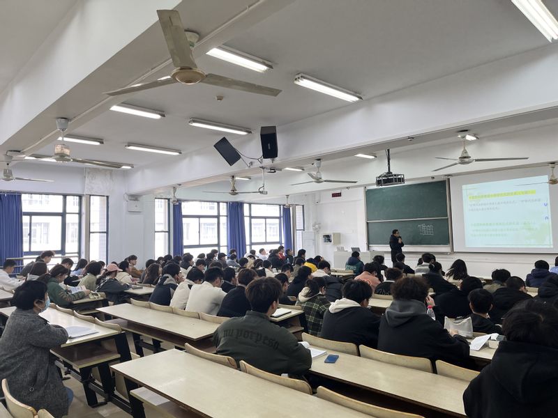 张慈萍老师在辅导员一起深入学院陈建飞老师的数字电路与逻辑设计B (混合式)课堂进行随堂听课,课前张老师和学生进行简短的交流,了解学生对这门课程的感受。课中张老师认真记录学生的听课表现及老师的讲课情况。课后张老师对于学生的听课表现、老师的授课情况等给予了简短的交流和点评,真诚地提出课堂教学中的优点和不足,并提出改进的意见和建议。