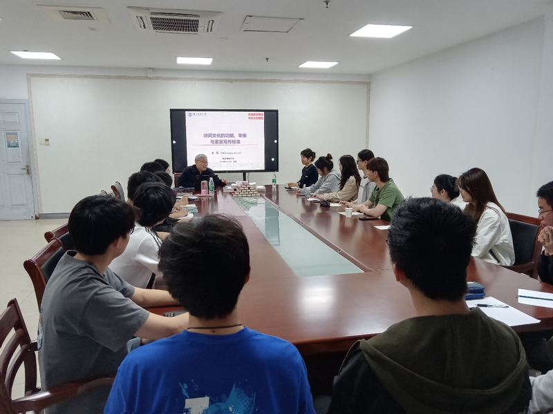 李雷教授讲课幽默风趣,用文理结合的思想带领大家走进诗词。他剖析了诗词与科研、与人生的紧密联系,叙述了诗词所具有的表达、反映、服务三大功能,指出学诗可以情飞扬、志高昂、人灵秀。李教授呼吁南邮人能够从诗词中培养想象力,培养创新精神,为科技创新和社会发展贡献力量。